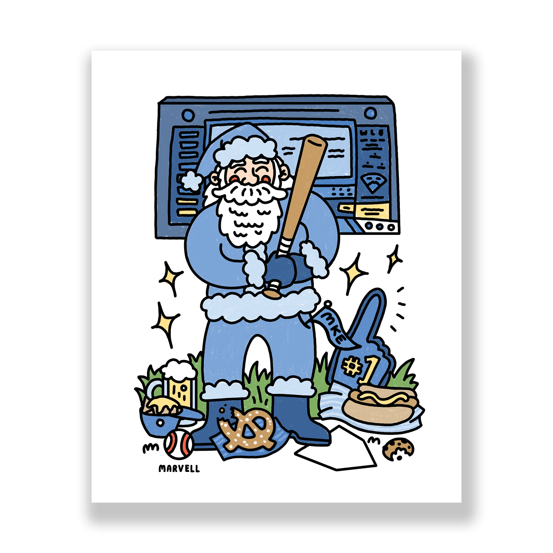 Take Santa out to the ball game! He had such a fun time at the baseball game, he asked me to draw this picture of him - awesome, right?!